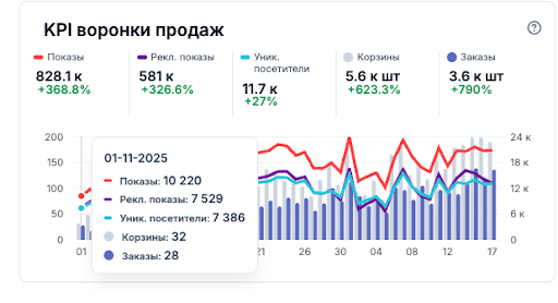 Решение: оптимизация карточек ключевых SKU, настройка правильных ставок и лимитов.