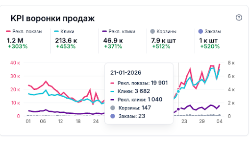 Получили релевантный трафик, подняли кол-во просмотров и сократили общий ДРР на 3,6 п.п., что дало позитивный рост юнит экономик