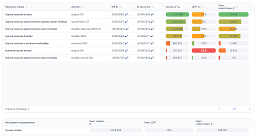 3. Протестировали единую ставку на топовые товары и различные ручные ставки на товары с более высоким ДРР.