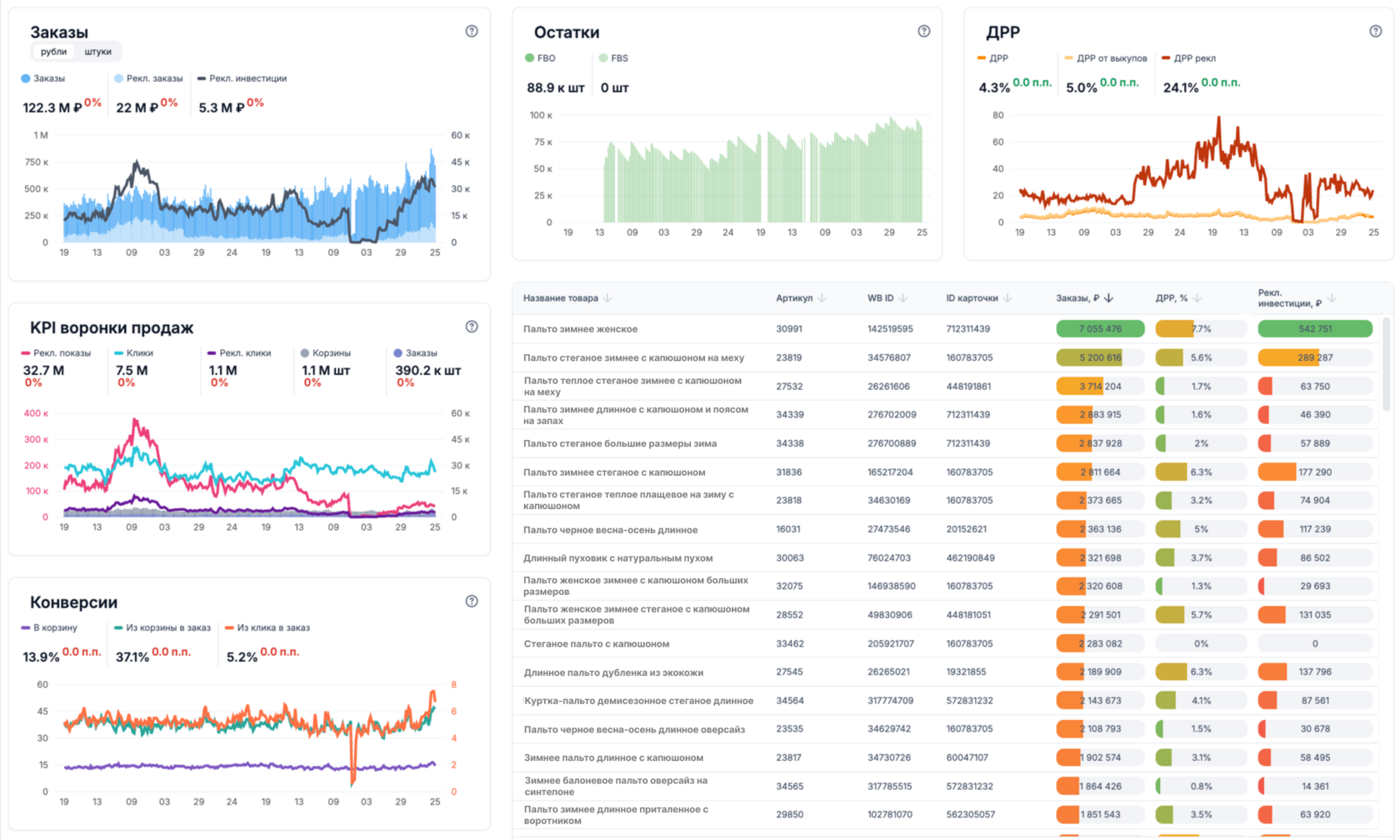 Селлер модной одежды с сезонным товаром страдал от избыточных запасов и высоких комиссий за долгосрочное хранение. Не было понимания оптимальных объемов поставок. Оборачиваемость была низкой — товары лежали на складе по 4-6 месяцев. Прибыль "съедали" комиссии маркетплейса за хранение.